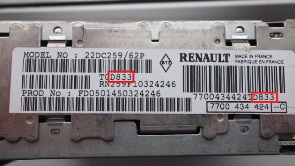 - Необходимо извлечь магнитолу из посадочного места на центральной консоли, pre-code записан на бирке, расположенной на заднем торце (фото).