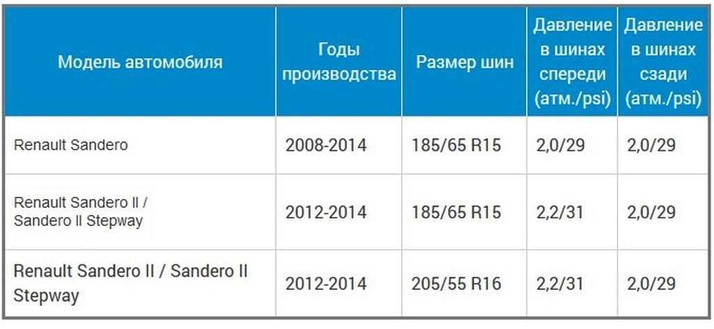 Нормативное давление в колесах авто Рено Сандеро