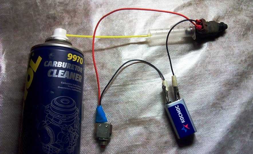 Также можно проверять не все форсунки сразу, а каждую отдельно. Для этого потребуется дать ток на деталь и установить к ней емкость с горючим. Во время подачи тока клапан сработает, и бензин должен будет брызнуть через распылитель. Но такая проверка неточная и потребуется все равно проверять на стенде.
