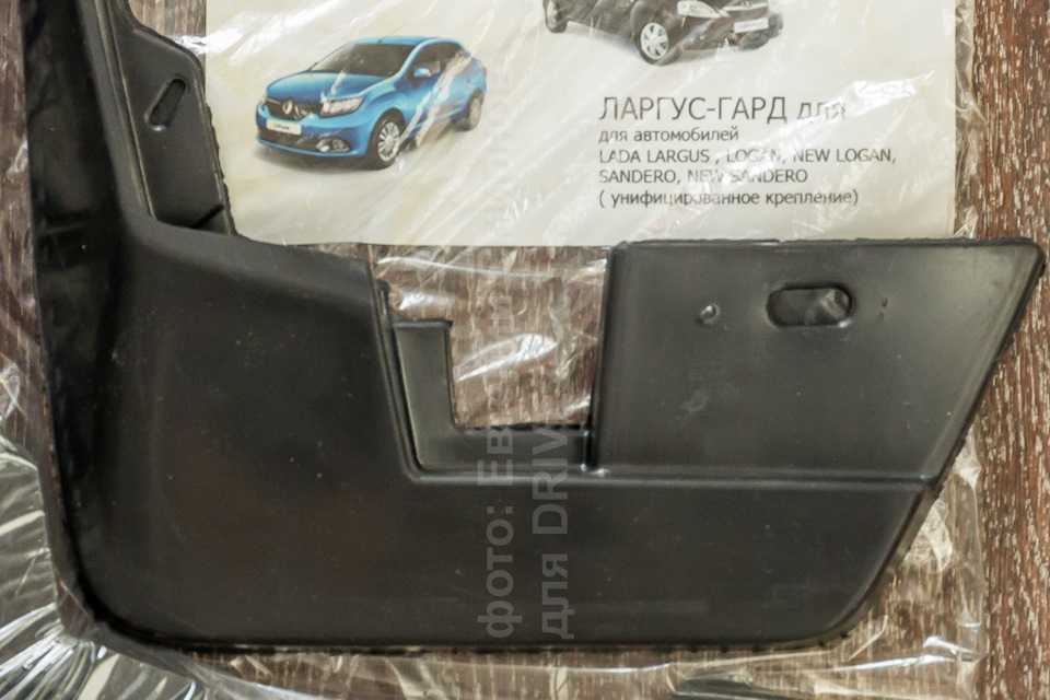 Возможные претенденты на установку:1. «Брызговики передние RENAULT Logan 2010-> (полиуретан)» — арт. NLF4116F10 (NOVLINE)2. «Брызговики передние для Lada Largus, LOGAN, NEW LOGAN, SANDERO, NEW SANDERO» — без арт. (Дастер-Гард)3. «Брызговики Renault Logan (X52) (2013-2014) передние (NOR)» — арт. NPLBR6924F (NORPLAST)
