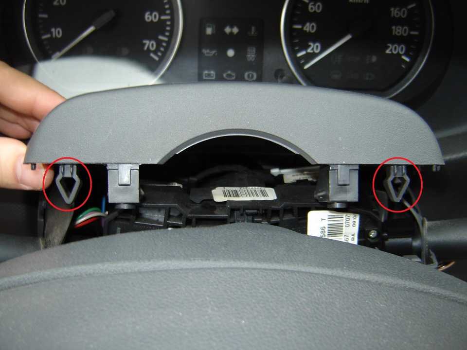 Разъединяем верхнюю часть обшивки рулевой колонки с нижней. Они соединяются с помощью вот таких защелок.