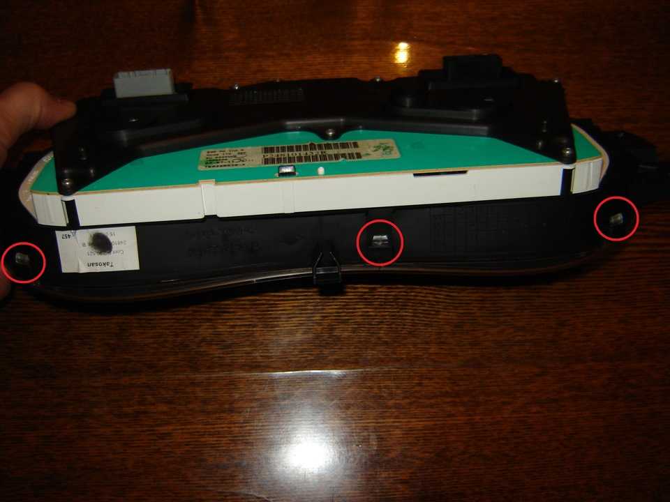 Разборка щитка приборовАккуратно снимаем стекло с лицевой стороны, оно держится на 6 защелках.