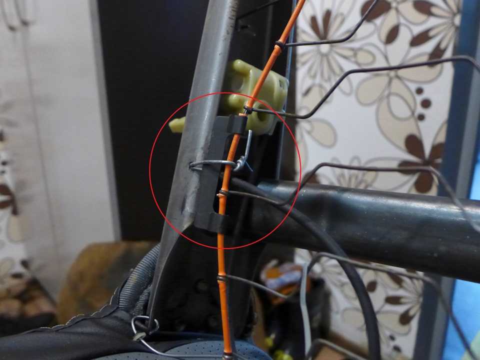 Тут все просто. Оголяем тросик на пару тройку сантиметров чтоб стал длиннее. Возвращаем его в рабочее отверстие в котором он и стоял и фиксируем. Как фиксировать? Тут у кого какая фантазия. В итоге закреплено должно быть примерно так.