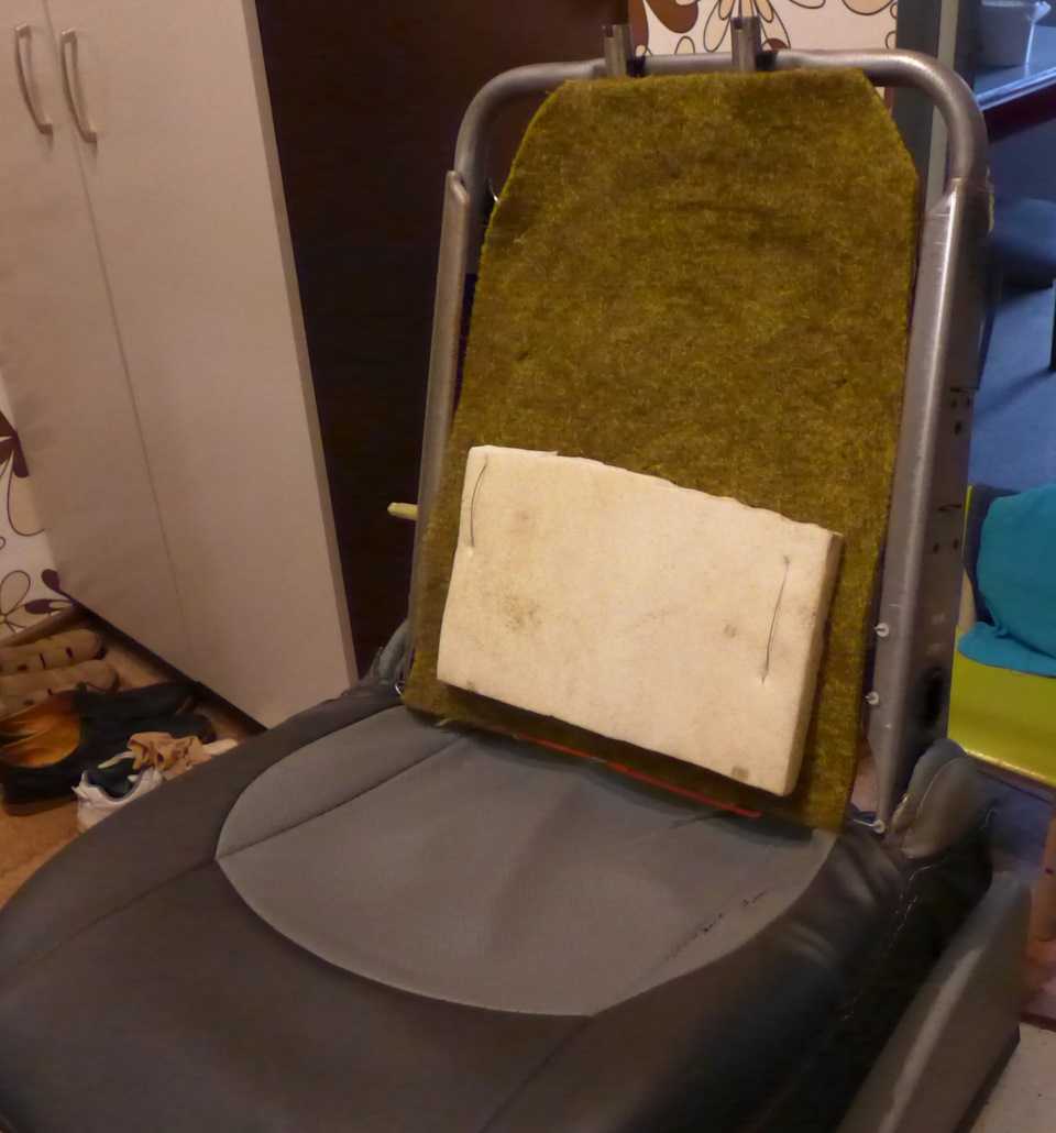На предыдущих фотках видно как металлическая стенка начинает жестко рвать паралон набивку сиденья. Укрепим конструкцию добавив полезные подкладки и паралонку.