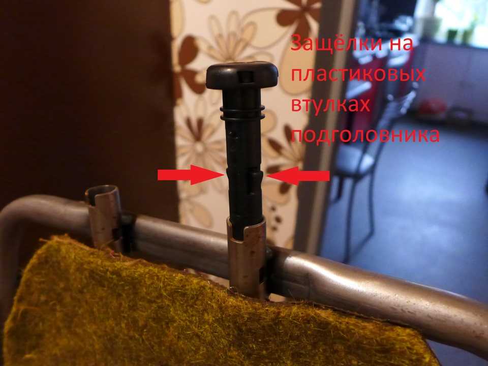 Для удобства расположите сиденье на столе или табуретках. Обивку снимаете как показано в видео. Мне было достаточно сложно вынуть пластиковые направляющие втулки подголовников. У них весьма тугие защёлки. У меня не получилось сжать их пальцами и я нажимал отвёрткой, попеременно то с одной, то с другой стороны, раскачивая и дёргая вверх втулку. На фото кажется всё просто, на на самом деле, в это время там ещё одет поролон и всё делается на ощупь и в тесном пространстве для рук.