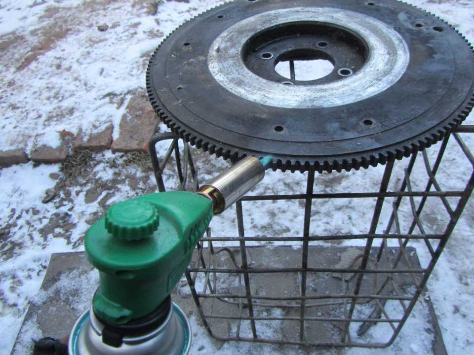 - паяльная лампа или газовая горелка – необходимо контролировать перегрев визуально, не допуская изменения цвета зубчатого обода.