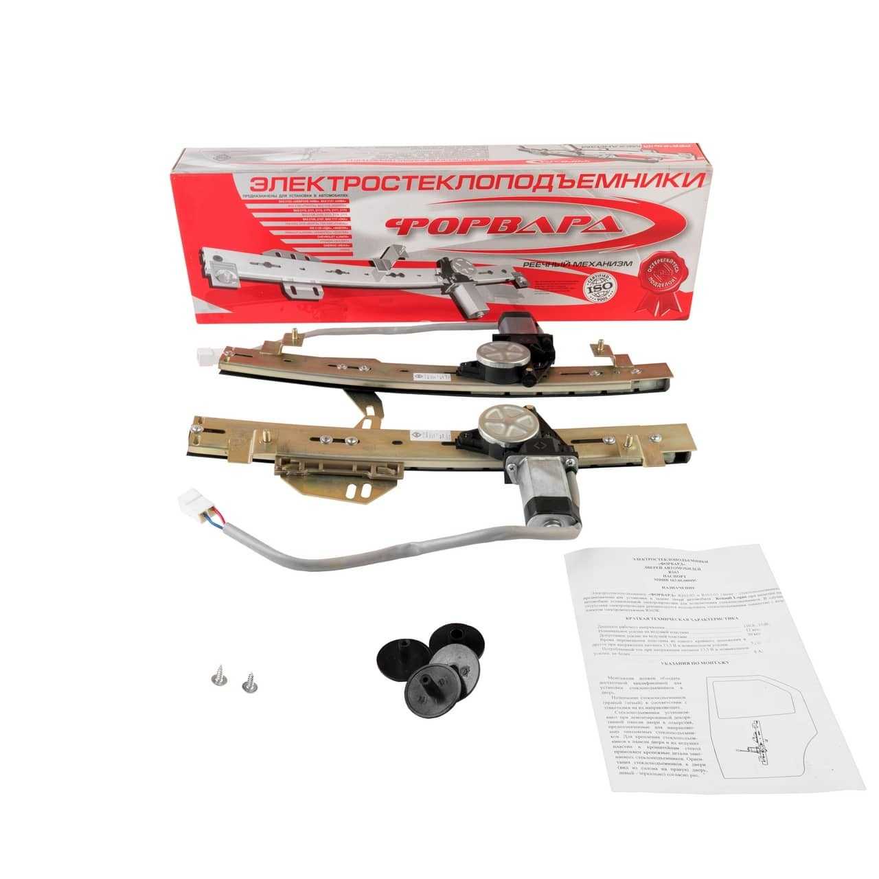Для версии с ручным приводом дополнительно необходимо снять ручку опускания стекол. Процесс снятия ручки и остальных элементов заключается в снятии пластиковых накладок с помощью отвертки или специальных пластиковых лопаток, и постепенного отгибания обшивки двери, которая закреплена на многоразовых клипсах (все этапы проходят после демонтажа ручки двери, левой, правой). Также для версий, оборудованных аудиосистемой необходимо снять динамик аудиосистемы. Он крепится непосредственно на обшивку двери. Затем необходимо открутить 2 гайки крепления автоматического механизма (также при установке задних подъемников) или же, в случае с ручным механизмом, количество крепежей будет составлять 4 гайки. После этого с помощью ключа (шестигранника) необходимо произвести демонтаж крепления стекла (в том числе и заднего при установке подъемников сзади). Далее необходимо поднять и зафиксировать стекло в максимально поднятом положении. Это необходимо для обеспечения удобства ремонтных работ. Затем необходимо произвести снятие старого нерабочего механизма. На штатное место необходимо закрепить новый механизм через штатный проем двери. После этого закрепить новый механизм с помощью гаек. При этом проверить фиксацию. Затем надлежит опустить стекло в нижнее положение и совместить его края с фиксаторами механизма подъемника (кареткой). Далее проверить работу механизма в целом и, в случае возникновения перекосов стекла, произвести регулировку. В случае с автоматическим механизмом при возникновении проблем необходимо обратиться к инструкции по установке и изучить электрическую схему подключения механизма и ручки в частности. Данная схема показывает процесс подключения кнопок к механизму и иных автоматическим элементов. Также с помощью схемы необходимо настроить подсветку кнопок (лампочку) подъемников (при этой процедуре настройки подсветки в целом у владельца не должно возникнуть трудностей). Затем необходимо установить панель двери и заглушки механизма на штатные места в обратной последовательности.