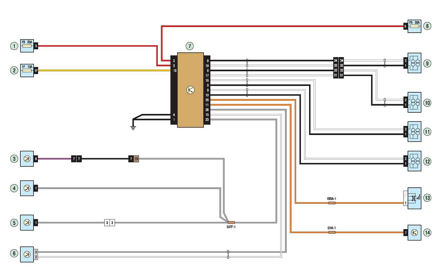| F20 | 25А | Выключатель заднего левого электрического стеклоподъемника |
