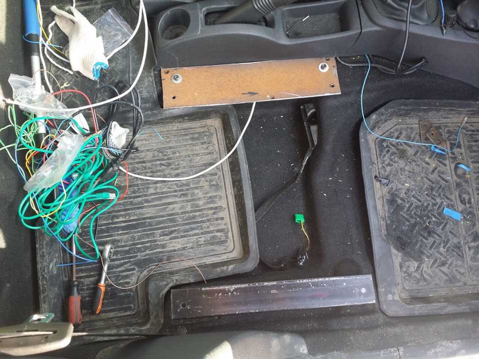 Ну а дальше самое интересное. Замена дурацких реношных сидушек. Держатся они на 4 болтах. Откручиваем их и снимаем разъёмы электрики под сиденьем. Разъём обогрева мне не дался, плюнул и обрезал его. Разъём аэирбэга сиденья (зелёного цвета) легко отщёлкивается. На приборке тут же загорается весёлая оранжевая лампочка с ошибкой airbag. Как будет время — надо будет разобраться как в мозгах машины отключить подушки сидений.