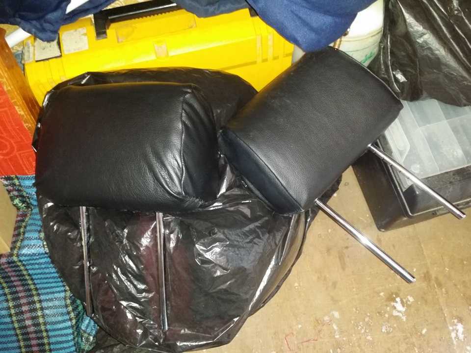 Были закуплены за 200 рублей на авито пару кусков чёрной кожи, естественно натуральной, и отдан родственнице на обшив вместе с подголовниками.