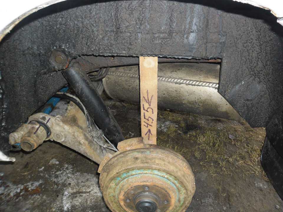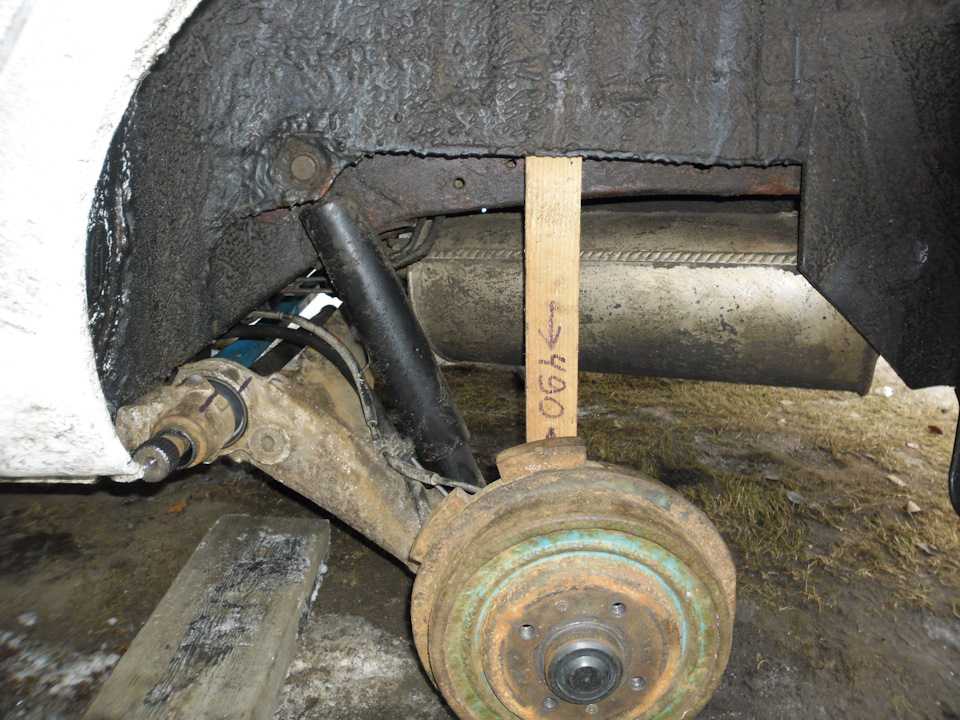 Я когда поднимал «зад» выбрал необходимую мне высоту, вырезал два бруска одинаковой длины, упирал в балку за ступичным подшипником и верхнюю точку подкрылка, вставлял торсионы.