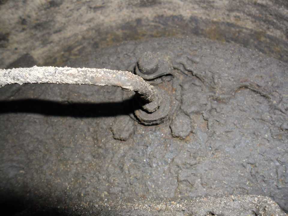 ! Один момент остался «за кадром съёмки» … Т.к. пресса у меня нету, пришлось отправить помошника к общему знакомому для выпресовки из рычагов торсионов и внутренних втулок старых сайлентов .Торсионы поддались на малом давлении, а вот вопрос, как достать втулки старых сайленблоков? Нашли сравнительно лёгкий и быстрый способ = вставили внутарь втулки подходящую по диаметру гайку (любую), обварили её …и также как и торсион выдавили вниз (уже имея точку опоры, а не просто полую трубку).