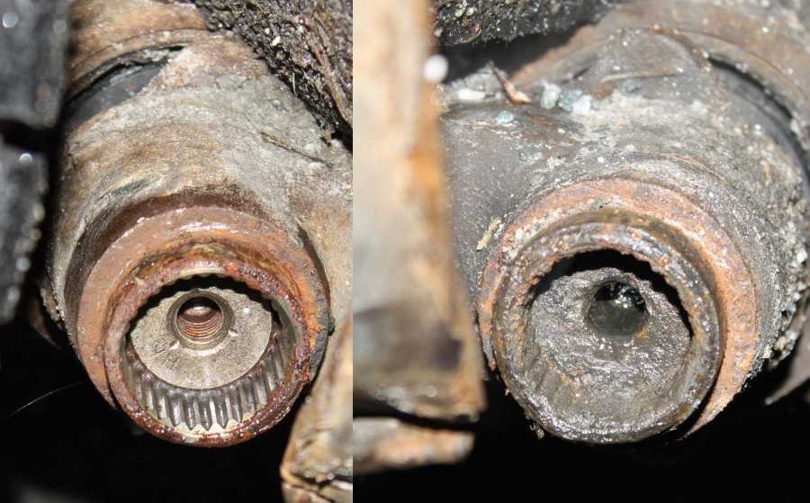 Болты не вбивал в салон, аккуратно снял. Приступаем к самому гадскому — выбиванию торсионов из посадок в рычагах и центральной втулке.