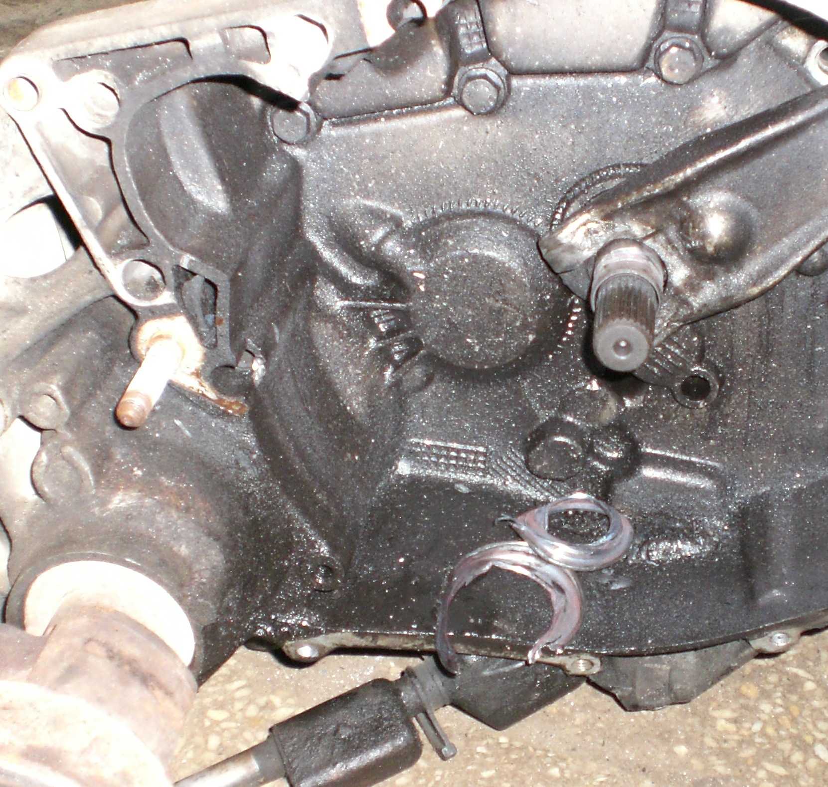 Отсоединяем привод кулисы и массовый провод на КПП. Сверху откручиваем рабочий цилиндр все болты, крепящие КПП к блоку. Главный цилиндр остается нетронутым. Поднимаем автомобиль на подъемнике, снимаем колеса и приводы, за ранее слив масло.