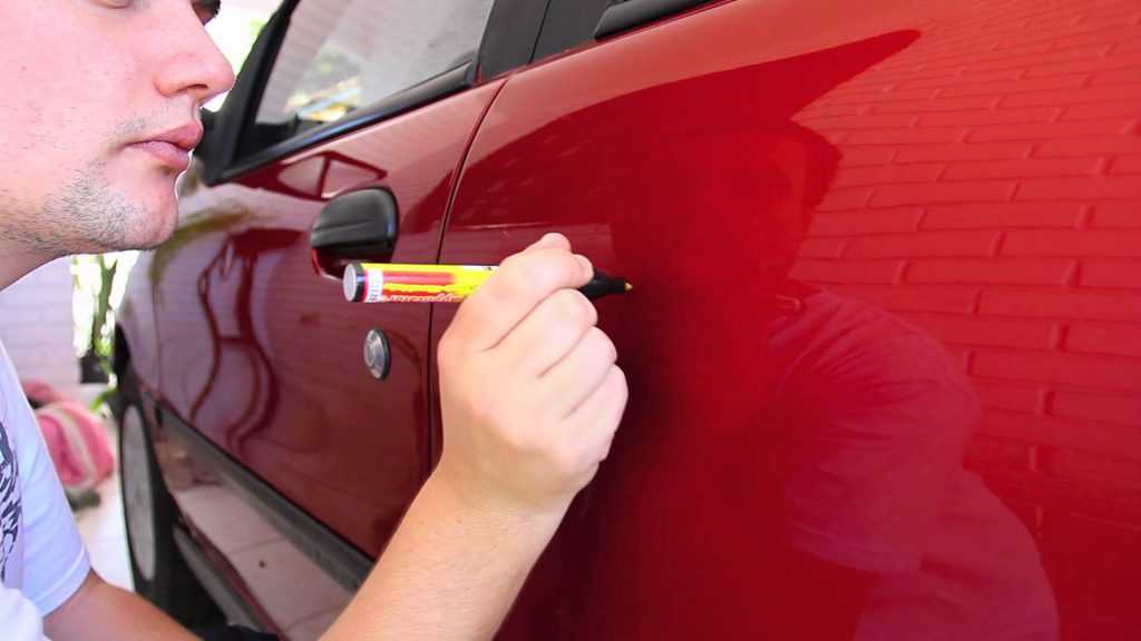 - Гелевые карандаши больше напоминают ручки или фломастеры. При их использовании состав «подкачивается» к пишущему кончику и наносится на скол или царапину. Избытки средства могут начать стекать по поверхности. Процедура устранения дефекта осуществляется несколько раз до тех пор, пока царапина полностью не исчезнет.