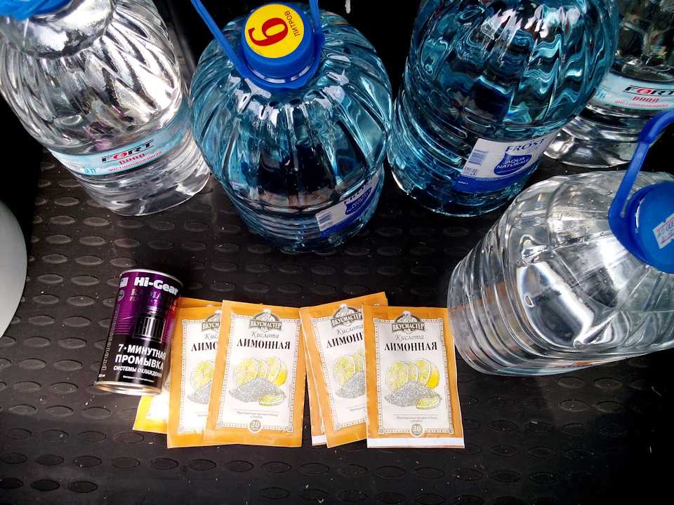 Одев шланг обратно стал заливать уже растворившуюся в дистиллированной воде лимонную кислоту, из расчета 20 грамм кислоты на литр воды, итого 6 пакетиков на 6 литров один литр то в системе остался.
