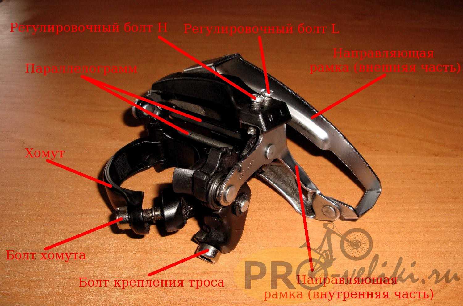 Конструкция переднего переключателя очень проста. Все его компоненты, а также их назначение мы рассмотрим ниже.