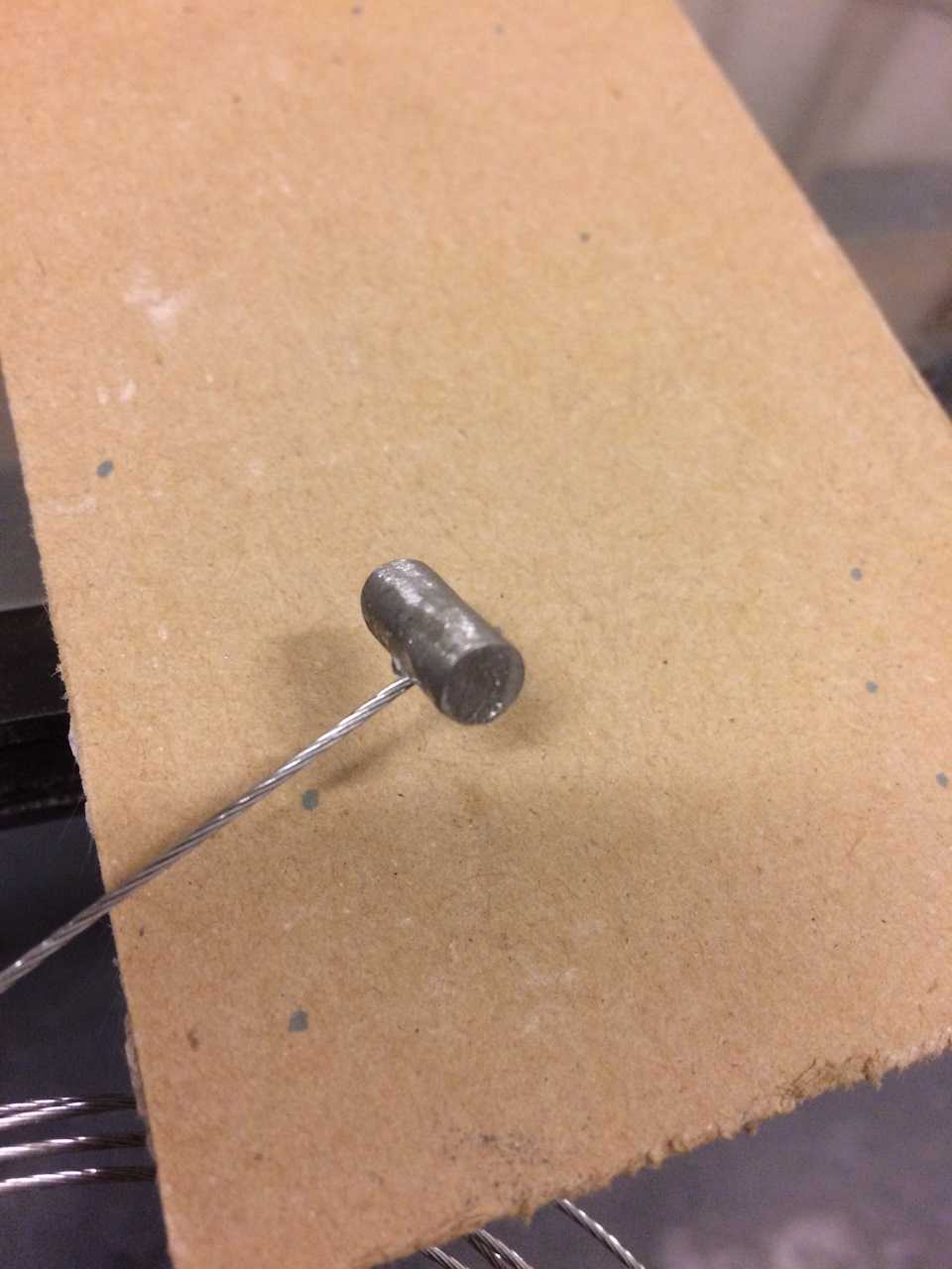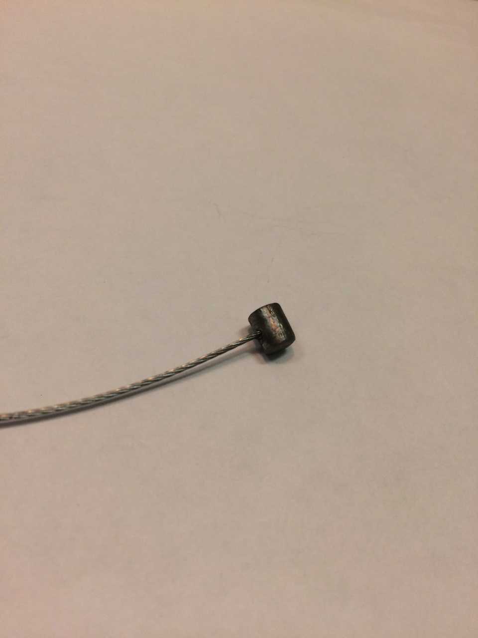Вот извлекли такой наконечник троса, но он оказался большой и надо было поработать еще напильником.