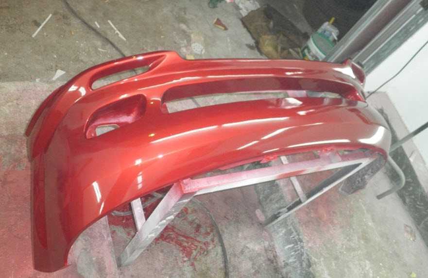 - Поверхность авто-бампера равномерно покрывают в несколько слоев краской и оставляют на просушку.