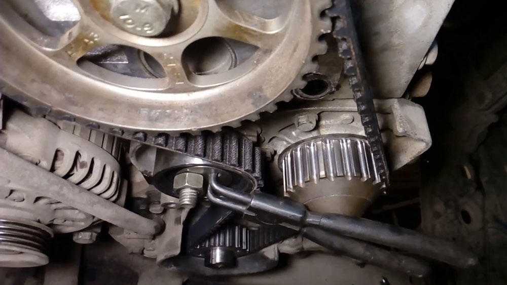 - скидываем ремень, предварительно поставив зубилом или аналогичным инструментом метки на ремне и шкиве, поскольку родные метки отсутствуют (они могут присутствовать на новом ремне, если вы намерены заменить заодно и ремень, но это несколько другая задача, мы её здесь обсуждать не будем);