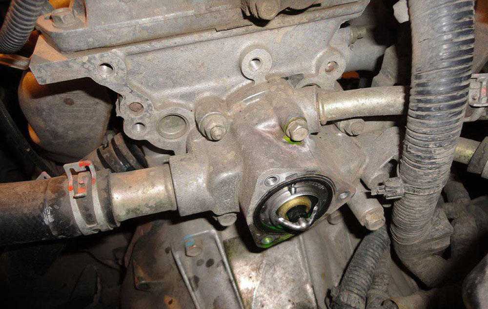 - неисправный термостат извлекается вместе с уплотнительным кольцом;