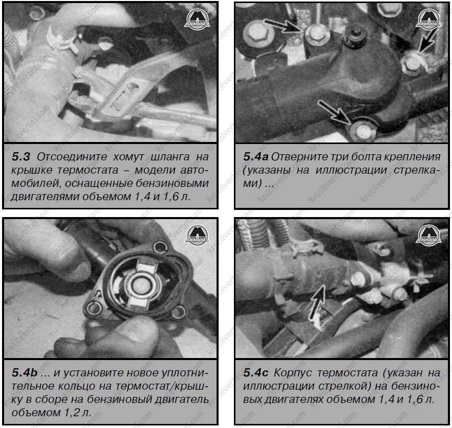 Как правило, поступают проще. Не нужно сливать антифриз и снимать корпус. Достаточно запустить холодный двигатель и контролировать температуру верхнего отводящего патрубка радиатора. При этом нижний патрубок прогреется довольно быстро. Верхний должен оставаться холодным вплоть до того момента, пока двигатель не выйдет на рабочую температуру 86-89 градусов. Только после этого верхний патрубок должен начинать интенсивно прогреваться. Печка же должна начинать греть уже после 5-7 минут работы двигателя. В противном случае либо ищем воздушную пробку в системе охлаждения, либо занимаемся заменой термостата.