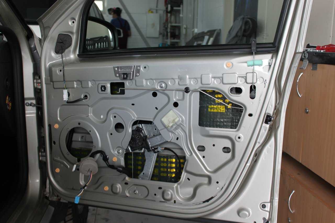 - Двери. Из-за их большого размера, отсутствия ребер жесткости и заводской изоляции очень много шумов проникает именно через эту часть авто. Даже если вы заизолируете только дверцы, то заметите огромную разницу.